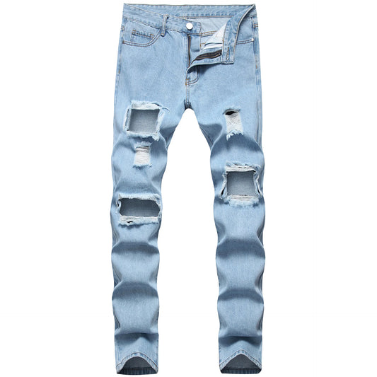Men's Destroyed Frayed Denim Pants