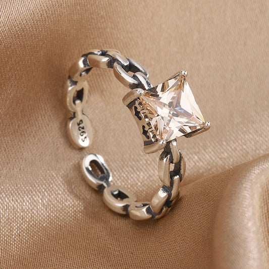 Sterling Silver Personalized Cold Style Twisted Opening Gem Ring